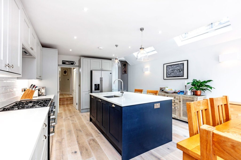 The Wandsworth borough extends from Wimbledon Common to Battersea Park and is named after the Wandle River, which is the greatest tributary of the Thames in London. It is the third largest “inner” London borough in terms of geographic size and the ninth most populous borough in all of London. The Surrey Iron Railway, arguably the oldest public railway in the world, is located in Wandsworth. This A-symmetric extension is hidden in one of the local backyards.